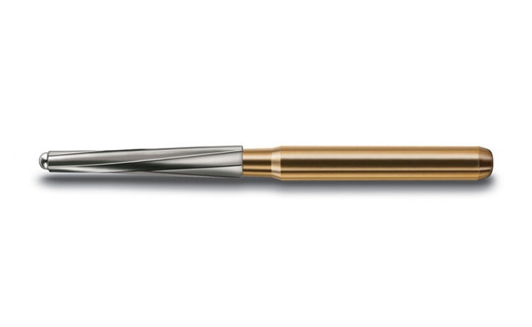 - Long, tapered bur creates a funnel shape for easier access in the pulp chamber