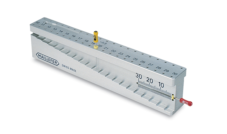 The Endo-M-Bloc measuring device features half-millimeter depth guides to ensure accurate measurements. This aluminum measuring block features 42 depth...